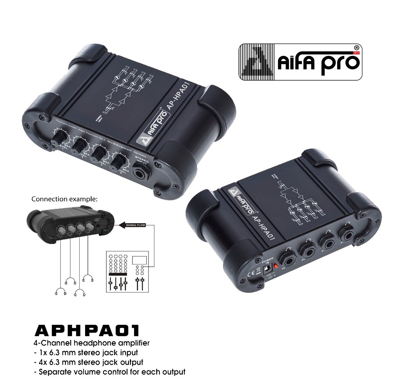 4x 6.3 mm stereo jack output